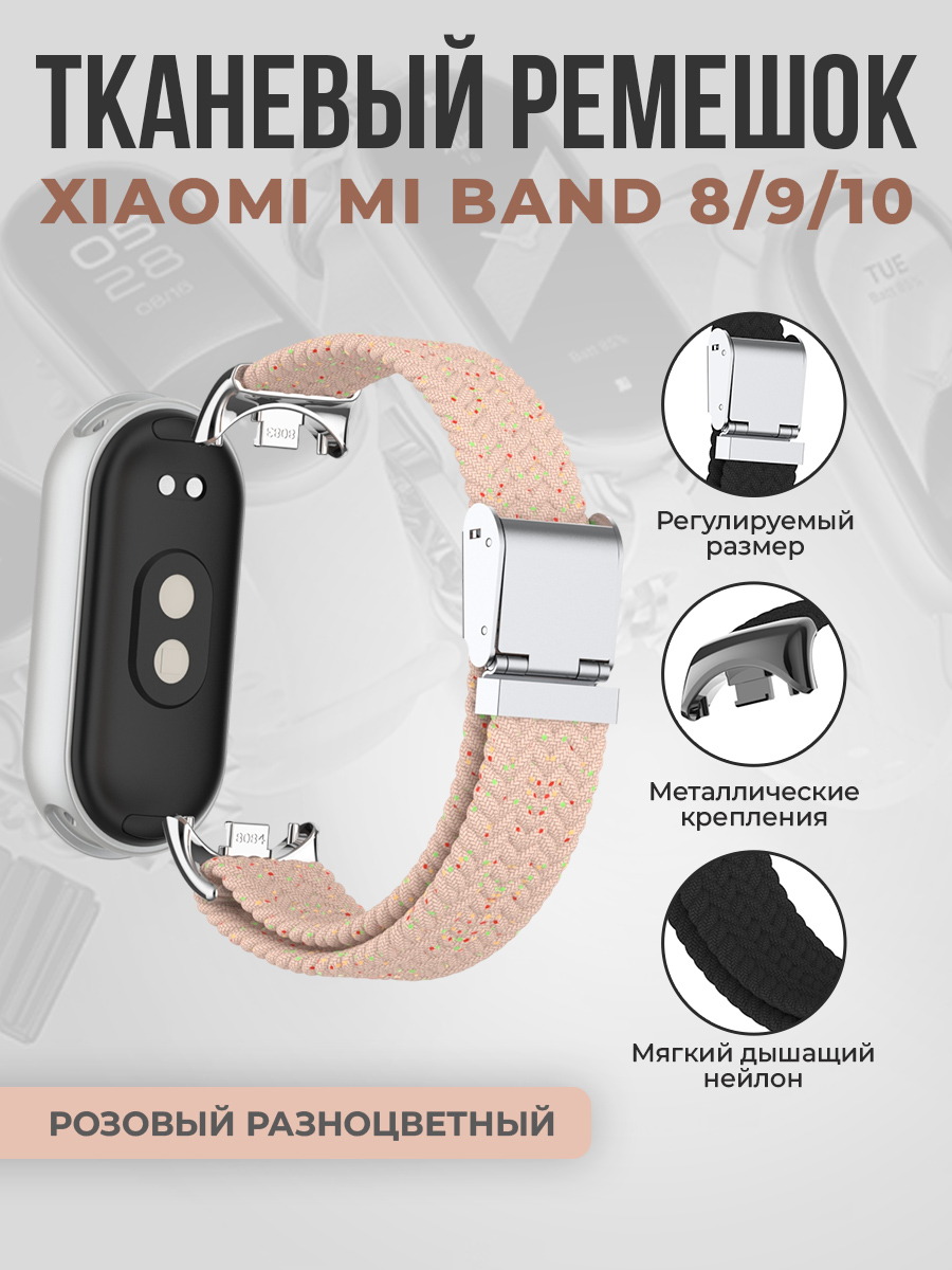 Тканевый ремешок для Xiaomi Mi Band 8/9/10, металлическая застежка, розовый разноцветный