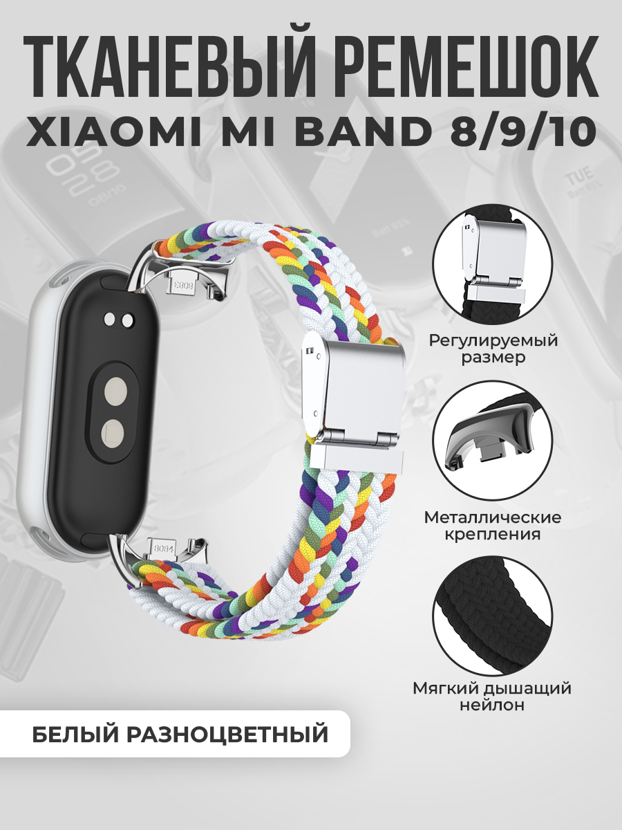 Тканевый ремешок для Xiaomi Mi Band 8/9/10, металлическая застежка, белый разноцветный