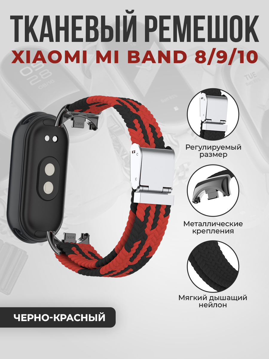 Тканевый ремешок для Xiaomi Mi Band 8/9/10, металлическая застежка, черно-красный