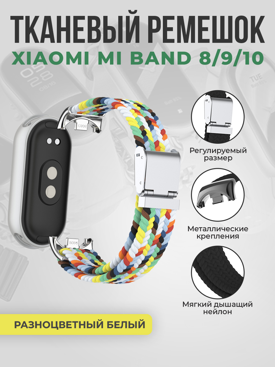 Тканевый ремешок для Xiaomi Mi Band 8/9/10, металлическая застежка, разноцветный белый