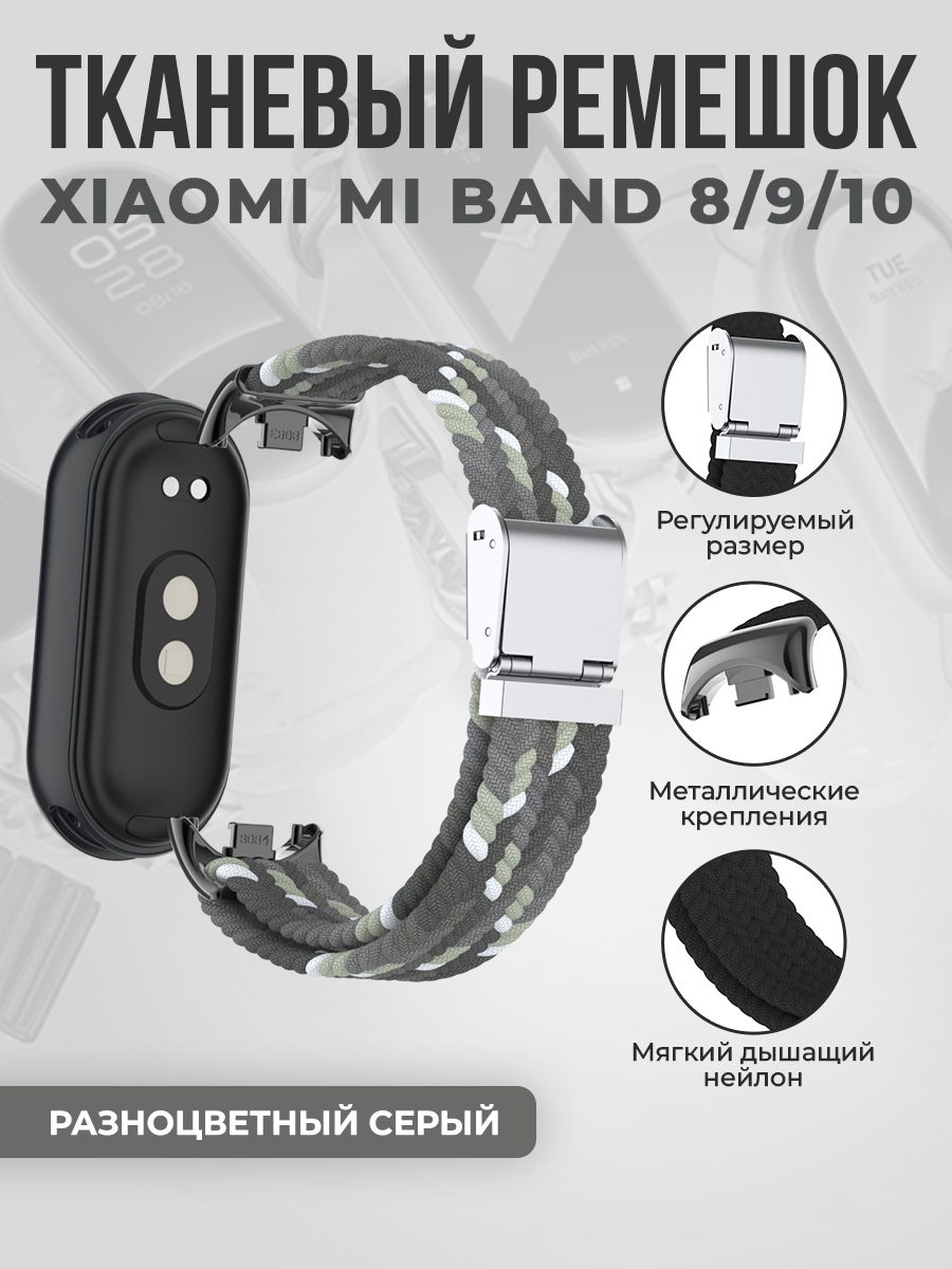 Тканевый ремешок для Xiaomi Mi Band 8/9/10, металлическая застежка, разноцветный серый