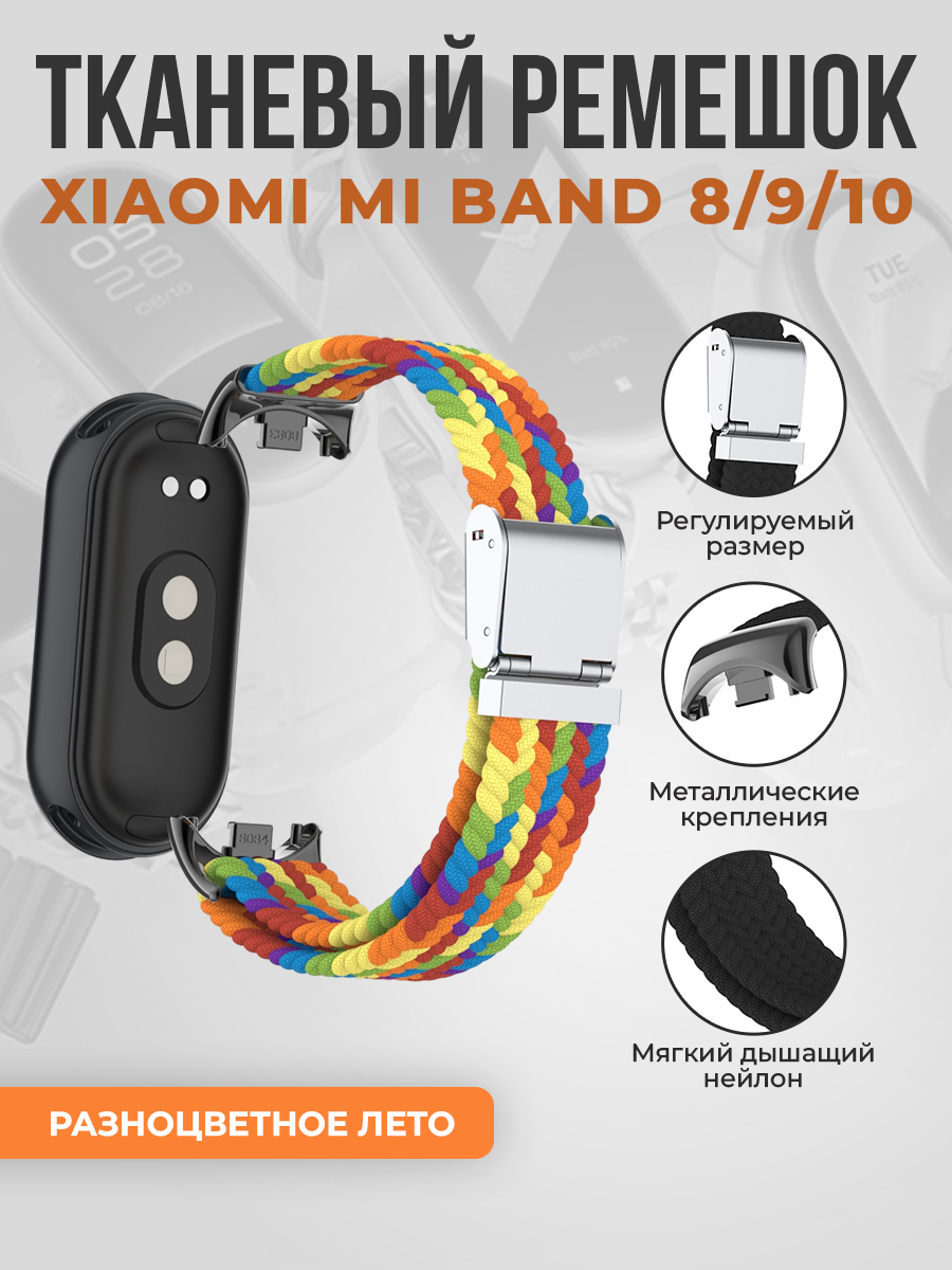 Тканевый ремешок для Xiaomi Mi Band 8/9/10, металлическая застежка, разноцветное лето
