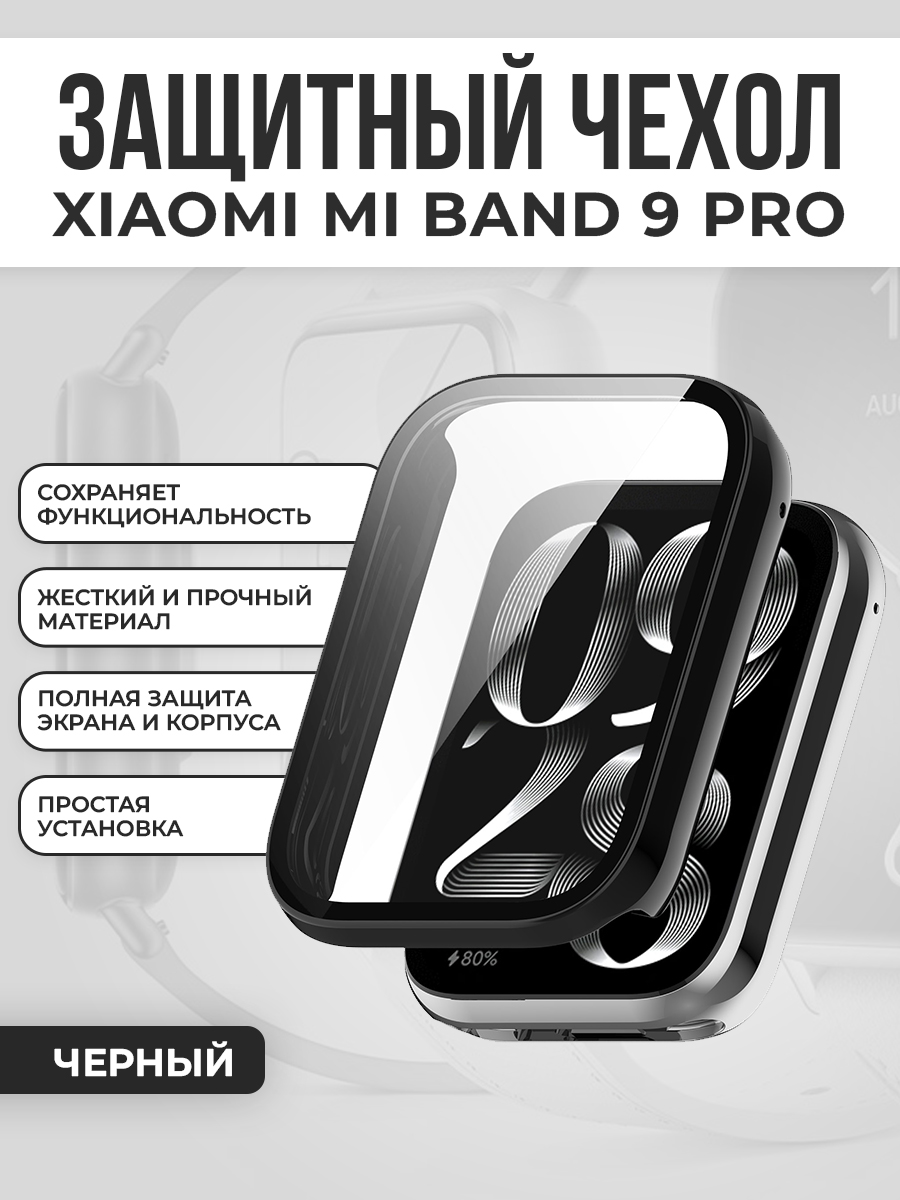 Чехол-бампер 360 градусов для Xiaomi Mi Band 9 Pro, черный