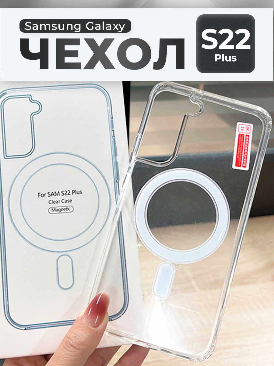 Прозрачный чехол для Samsung Galaxy S22 Plus, с зарядкой MagSafe
