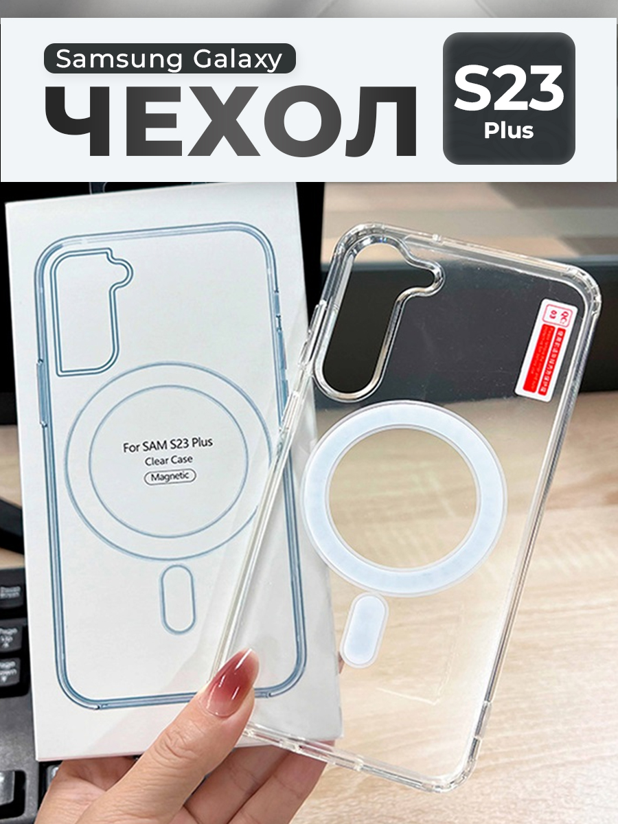 Прозрачный чехол для Samsung Galaxy S23 Plus, с зарядкой MagSafe
