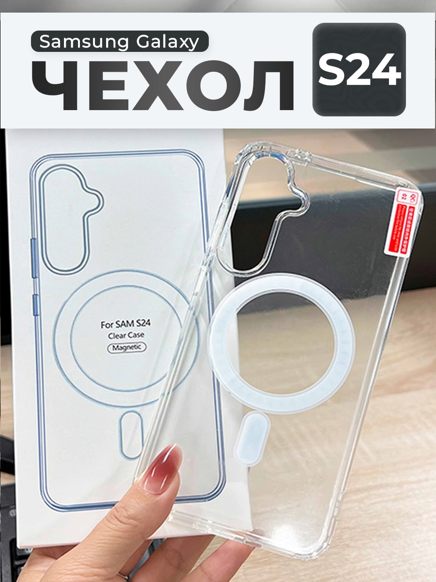 Прозрачный чехол для Samsung Galaxy S24, с зарядкой MagSafe