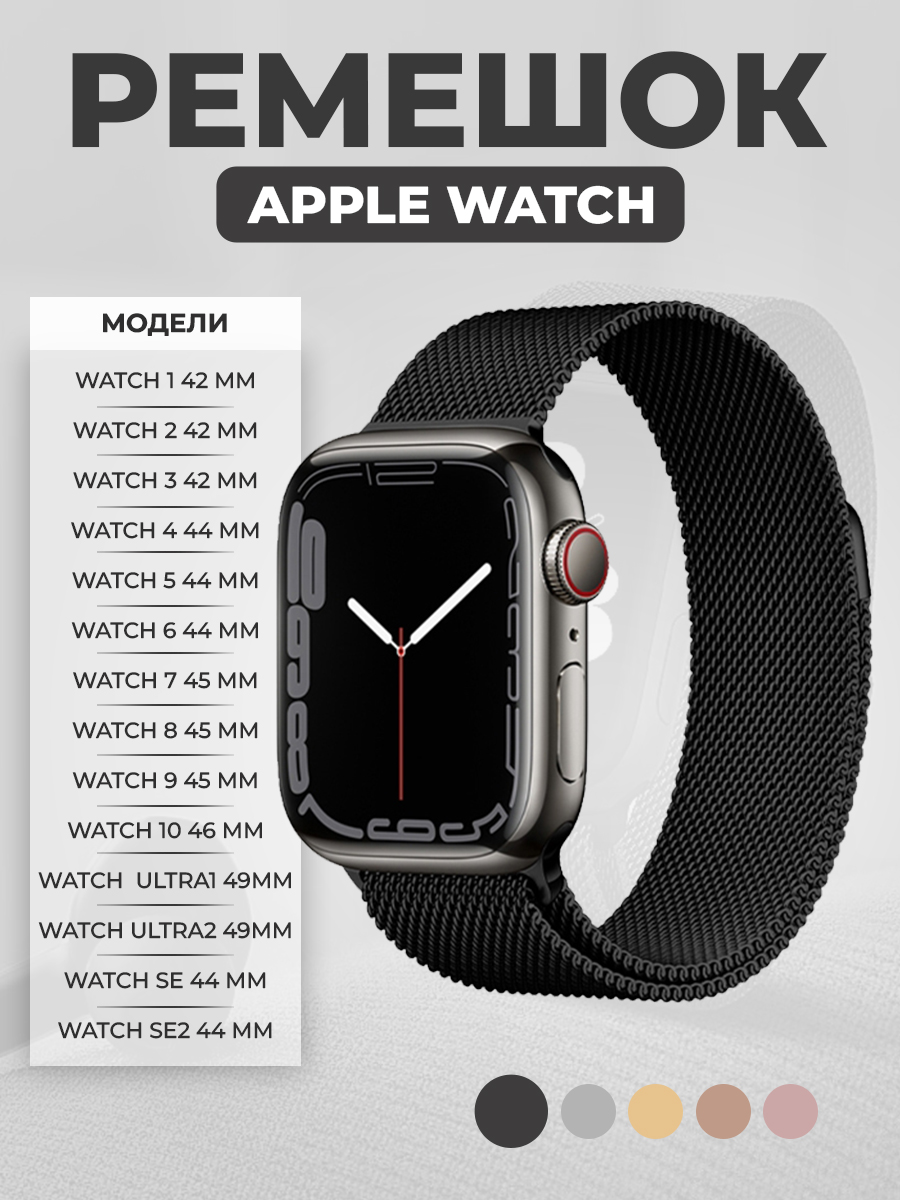Ремешок миланская петля для Apple Watch 1-10, SE, ULTRA (42/44/45/46/49 мм), черный