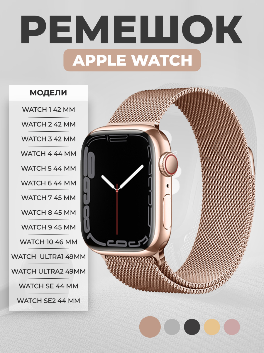 Ремешок миланская петля для Apple Watch 1-10, SE, ULTRA (42/44/45/46/49 мм), розово-золотой
