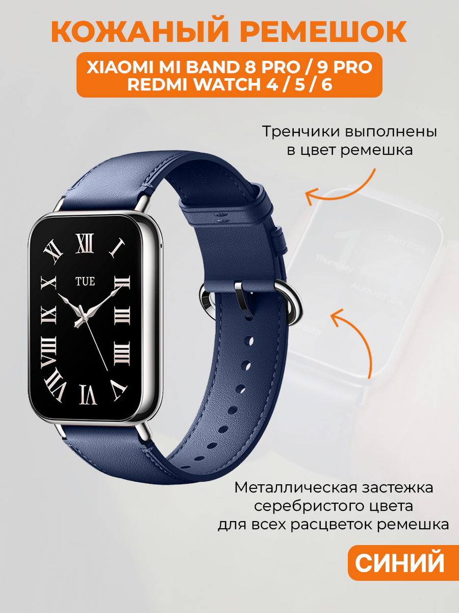 Кожаный ремешок для Xiaomi Mi Band 8 Pro / Xiaomi Mi Band 9 Pro / Redmi Watch 4 / Redmi Watch 5 / Redmi Watch 6, синий