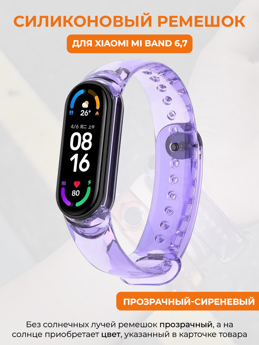 Силиконовый ремешок для Xiaomi Mi Band 6,7, меняет цвет на солнце, прозрачный-сиреневый