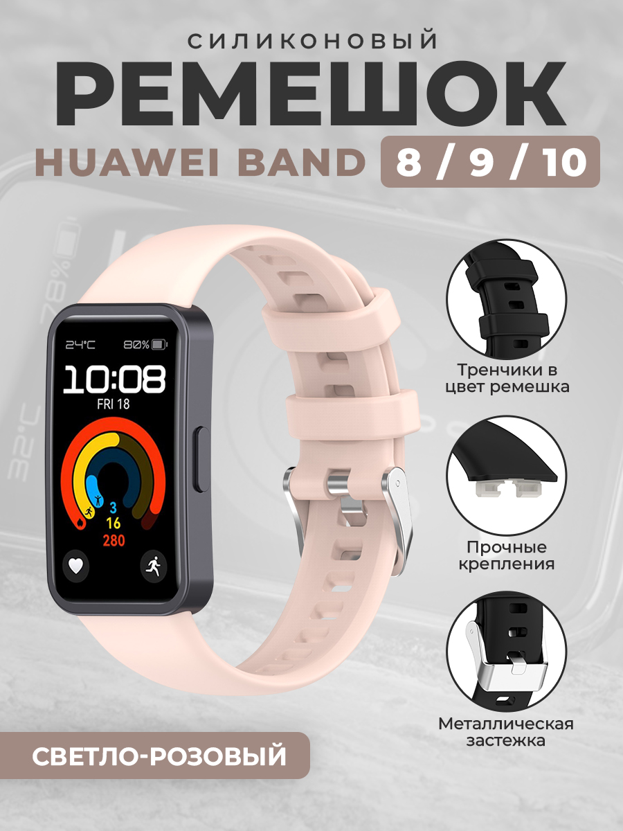 Силиконовый ремешок для Huawei Band 8/9/10, светло-розовый