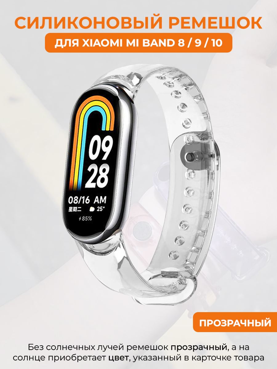 Силиконовый ремешок для Xiaomi Mi Band 8/9/10, прозрачный