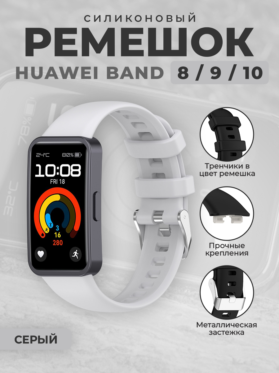 Силиконовый ремешок для Huawei Band 8/9/10, серый