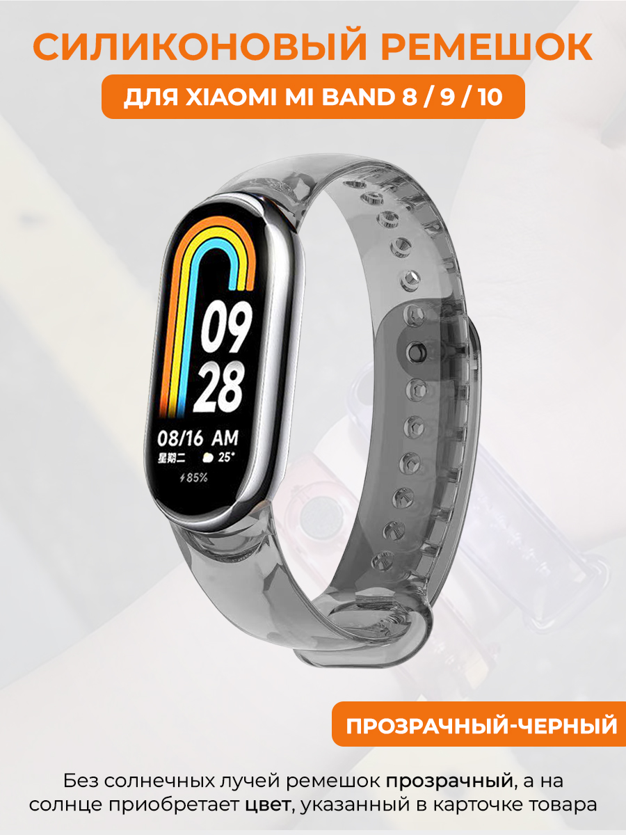 Силиконовый ремешок для Xiaomi Mi Band 8/9/10, меняет цвет на солнце, прозрачный-черный
