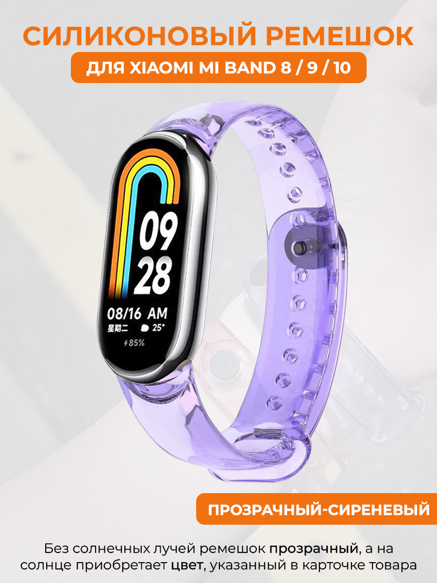 Силиконовый ремешок для Xiaomi Mi Band 8/9/10, меняет цвет на солнце, прозрачный-сиреневый