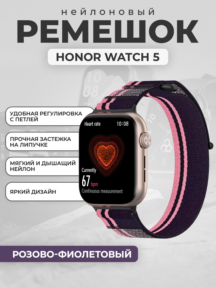 Нейлоновый ремешок с петлей для Honor Watch 5, розово-фиолетовый