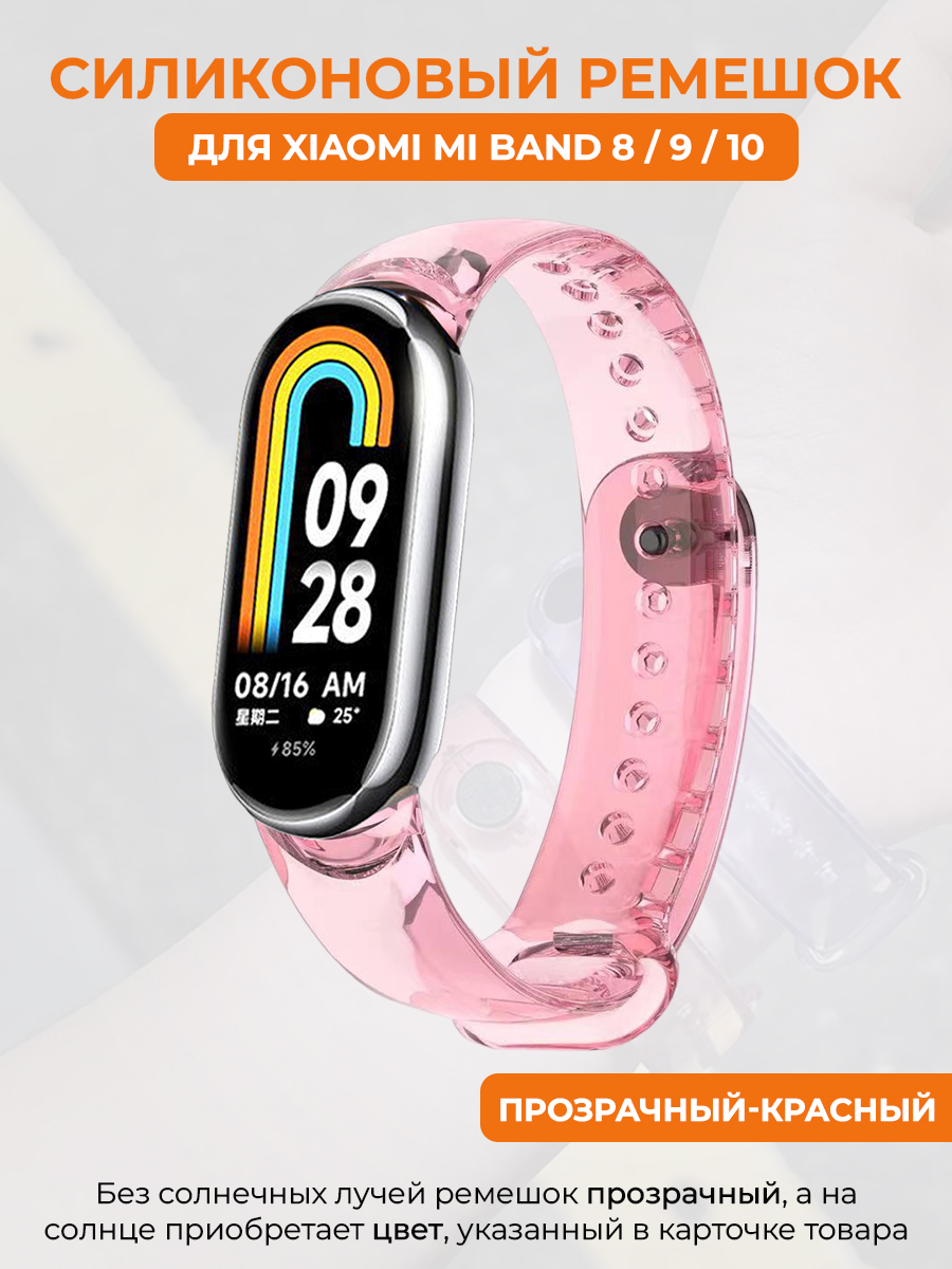 Силиконовый ремешок для Xiaomi Mi Band 8/9/10, меняет цвет на солнце, прозрачный-красный