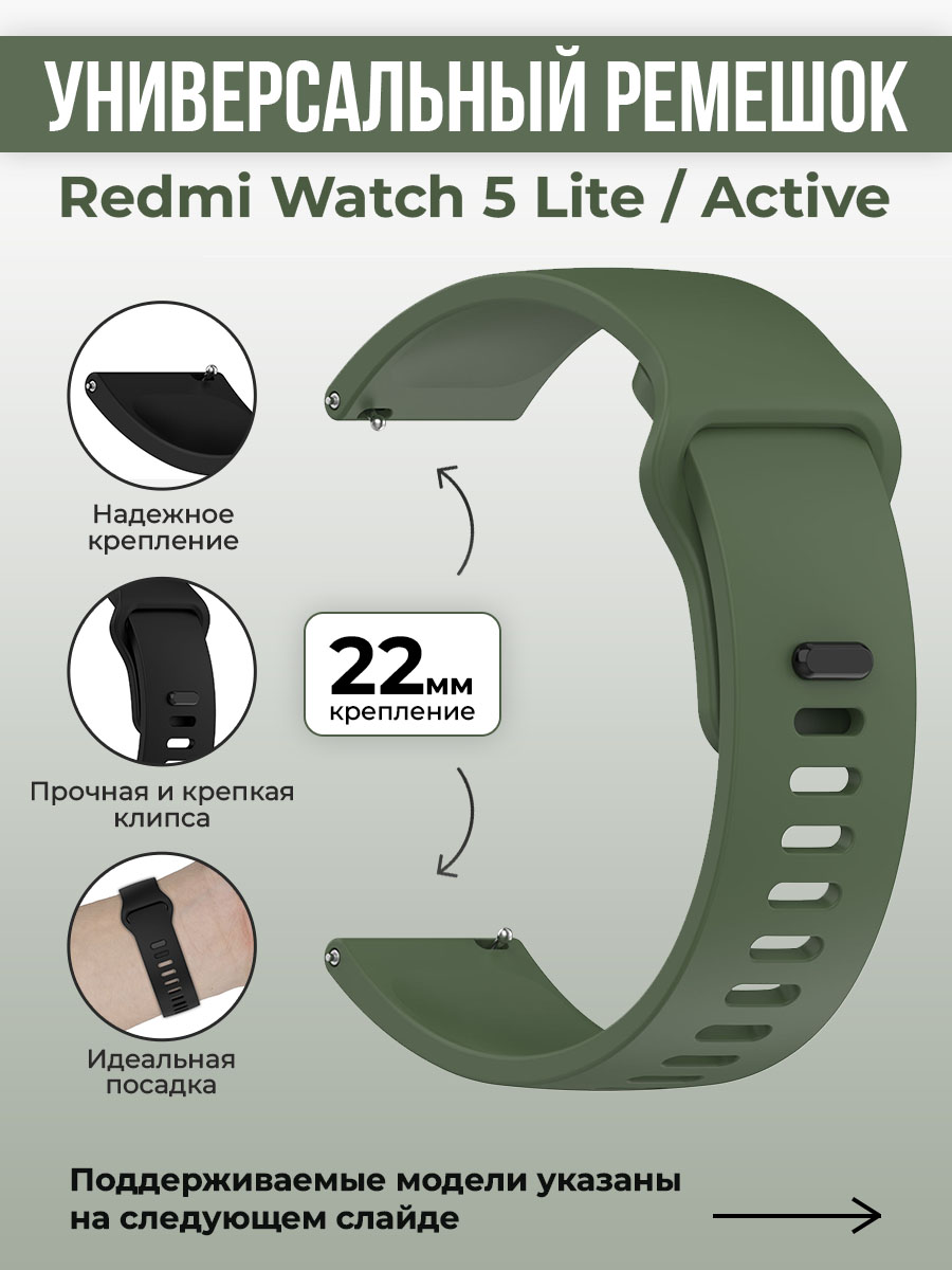 Силиконовый ремешок для Redmi Watch 5 Lite / Redmi Watch 5 Active, 22мм, темно-зеленый