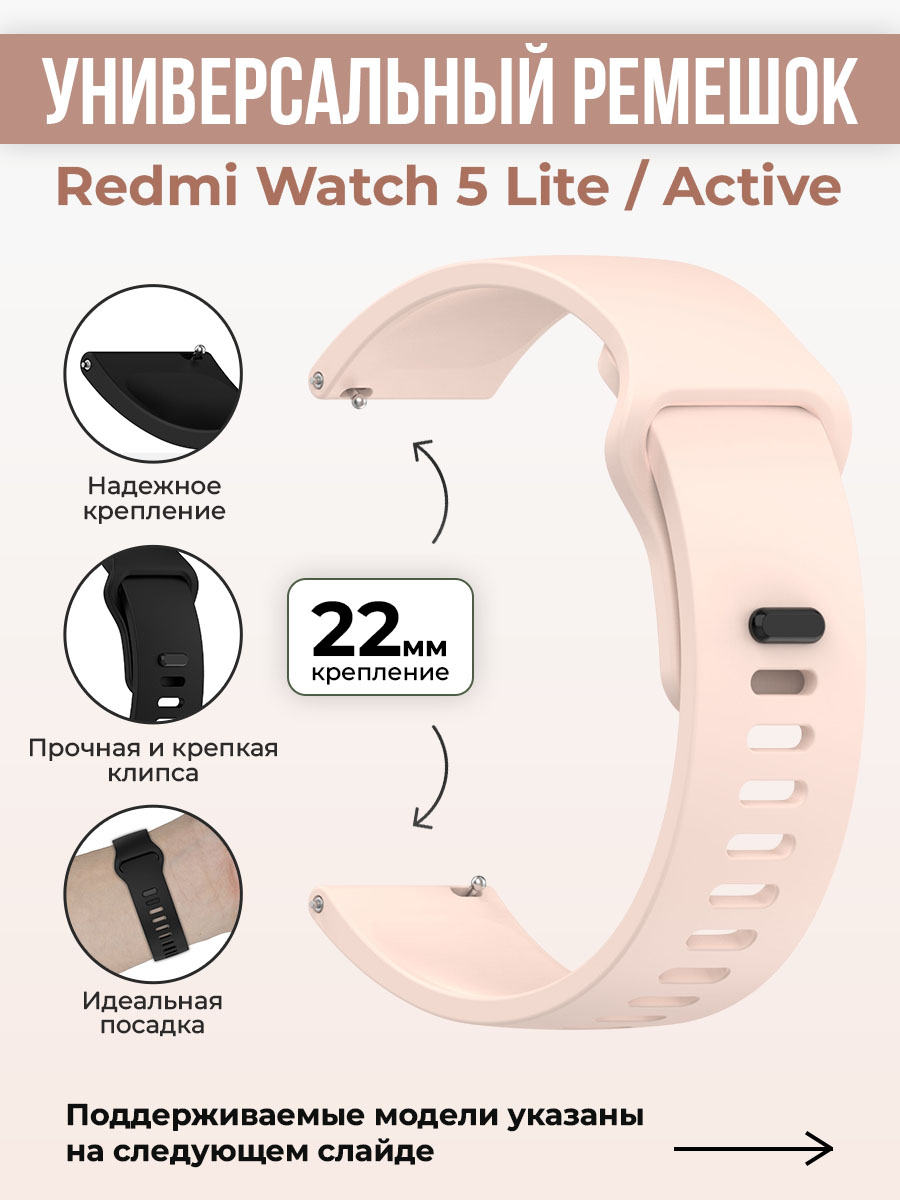 Силиконовый ремешок для Redmi Watch 5 Lite / Redmi Watch 5 Active, 22мм, светло-розовый