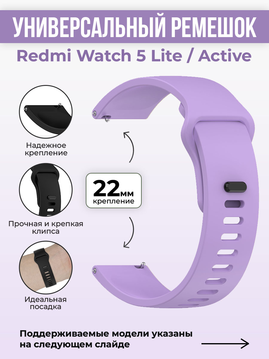 Силиконовый ремешок для Redmi Watch 5 Lite / Redmi Watch 5 Active, 22мм, фиолетовый