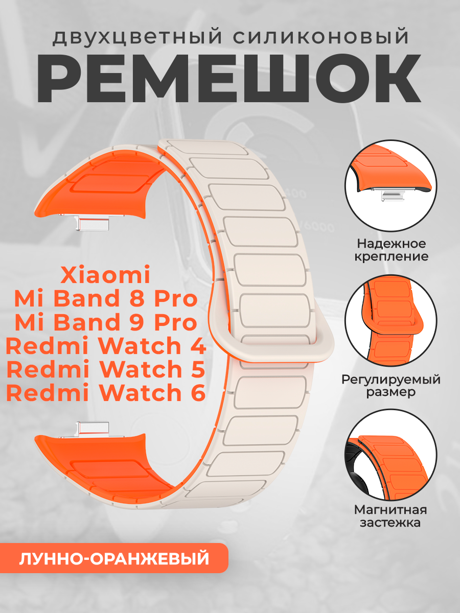 Двухцветный силиконовый ремешок для Xiaomi Mi Band 8 Pro/9 Pro и Redmi Watch 4/5/6, лунно-оранжевый