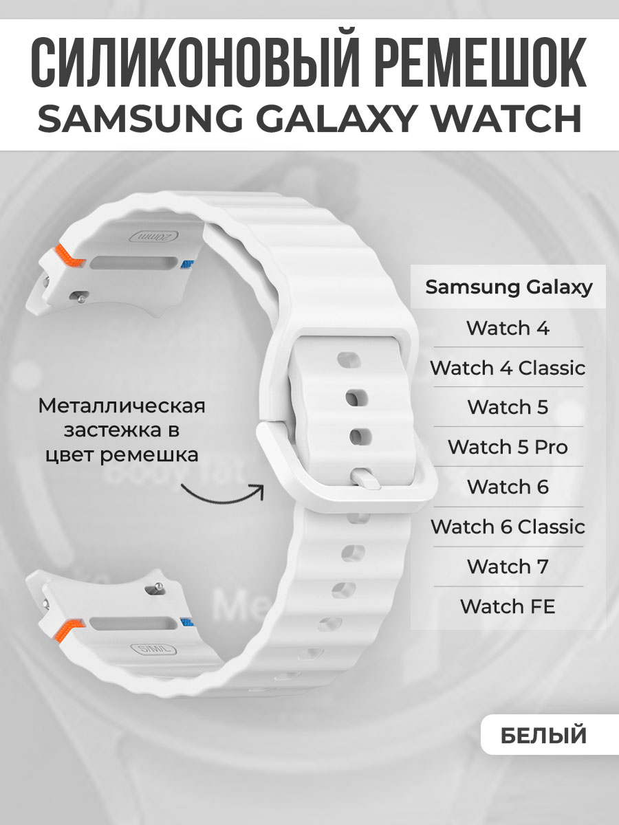 Силиконовый ремешок для Samsung Galaxy Watch 4/5/6/7/FE, белый
