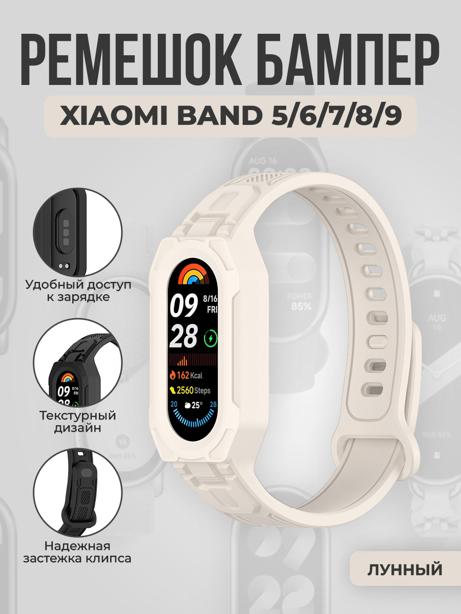 Ремешок бампер для Xiaomi Band 5/6/7/8/9, лунный