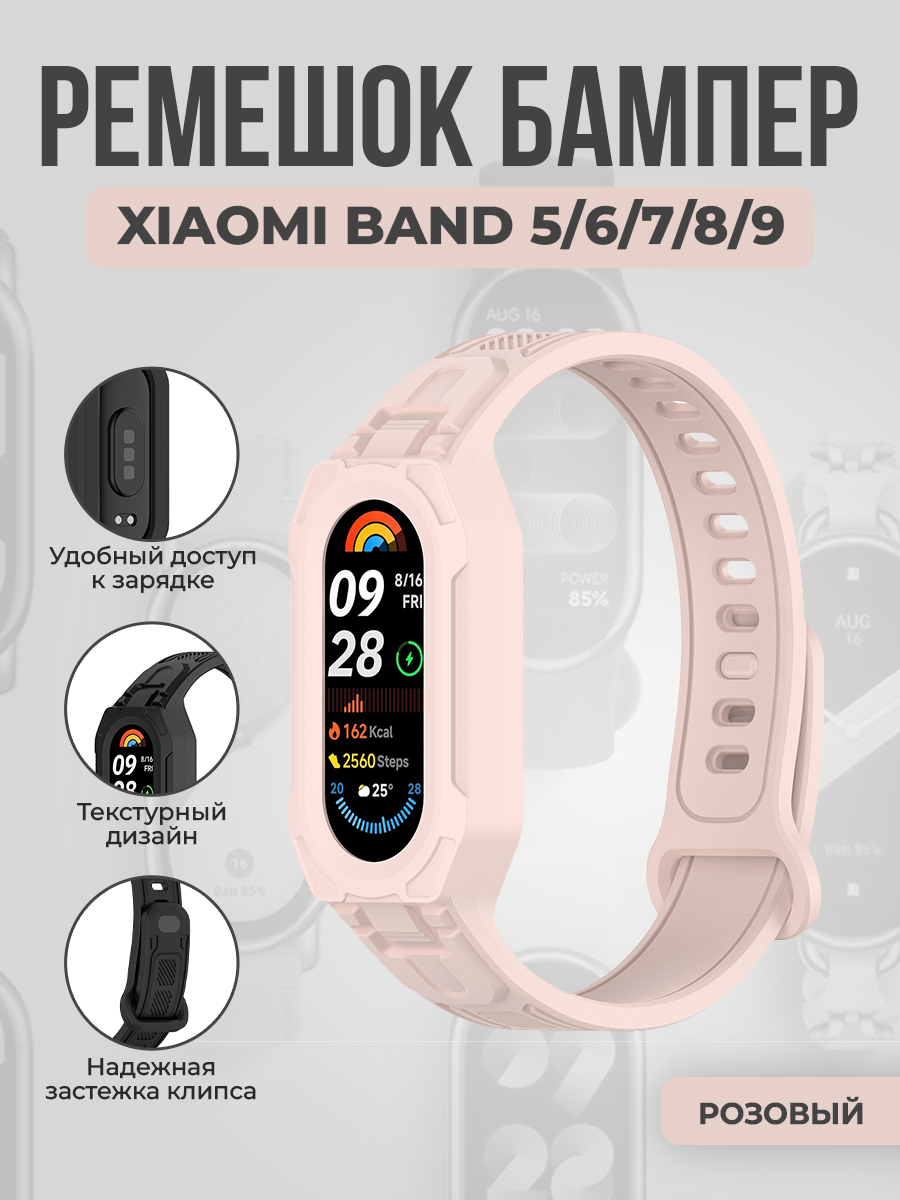 Ремешок бампер для Xiaomi Band 5/6/7/8/9, розовый