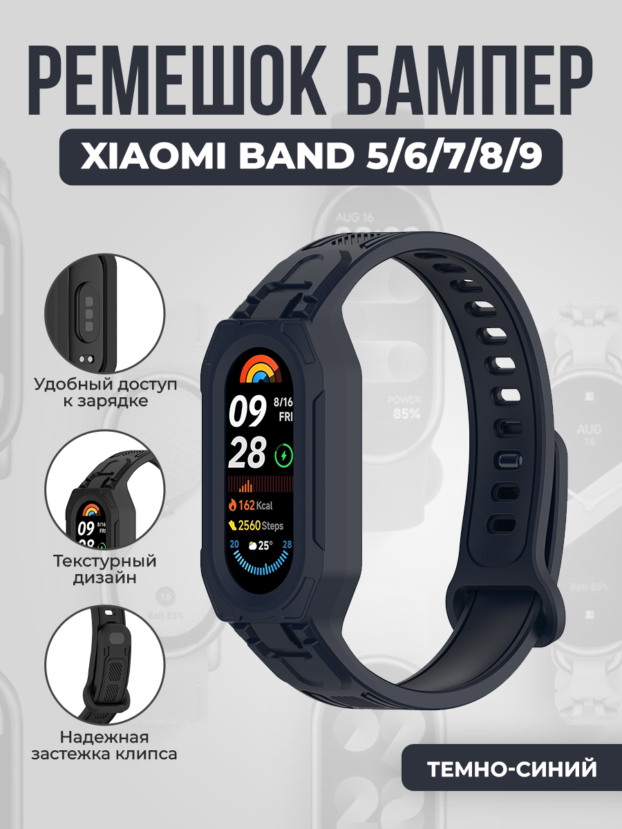 Ремешок бампер для Xiaomi Band 5/6/7/8/9, темно-синий