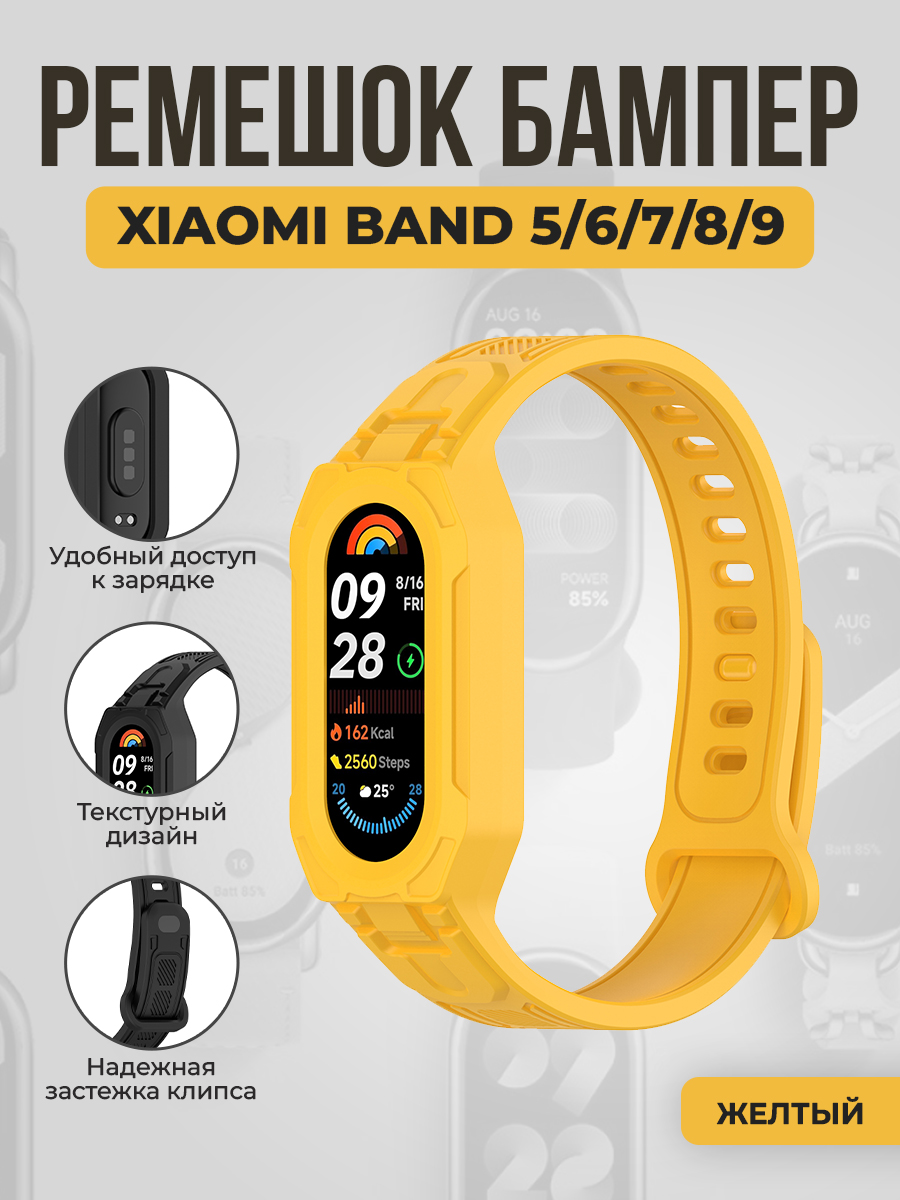 Ремешок бампер для Xiaomi Band 5/6/7/8/9, желтый