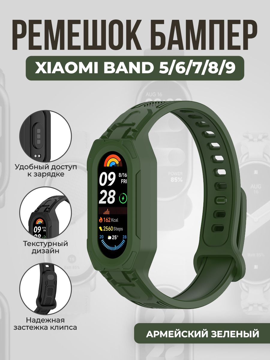 Ремешок бампер для Xiaomi Band 5/6/7/8/9, армейский зеленый