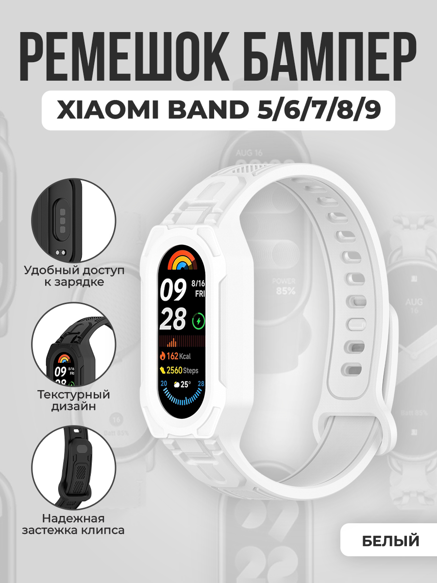Ремешок бампер для Xiaomi Band 5/6/7/8/9, белый