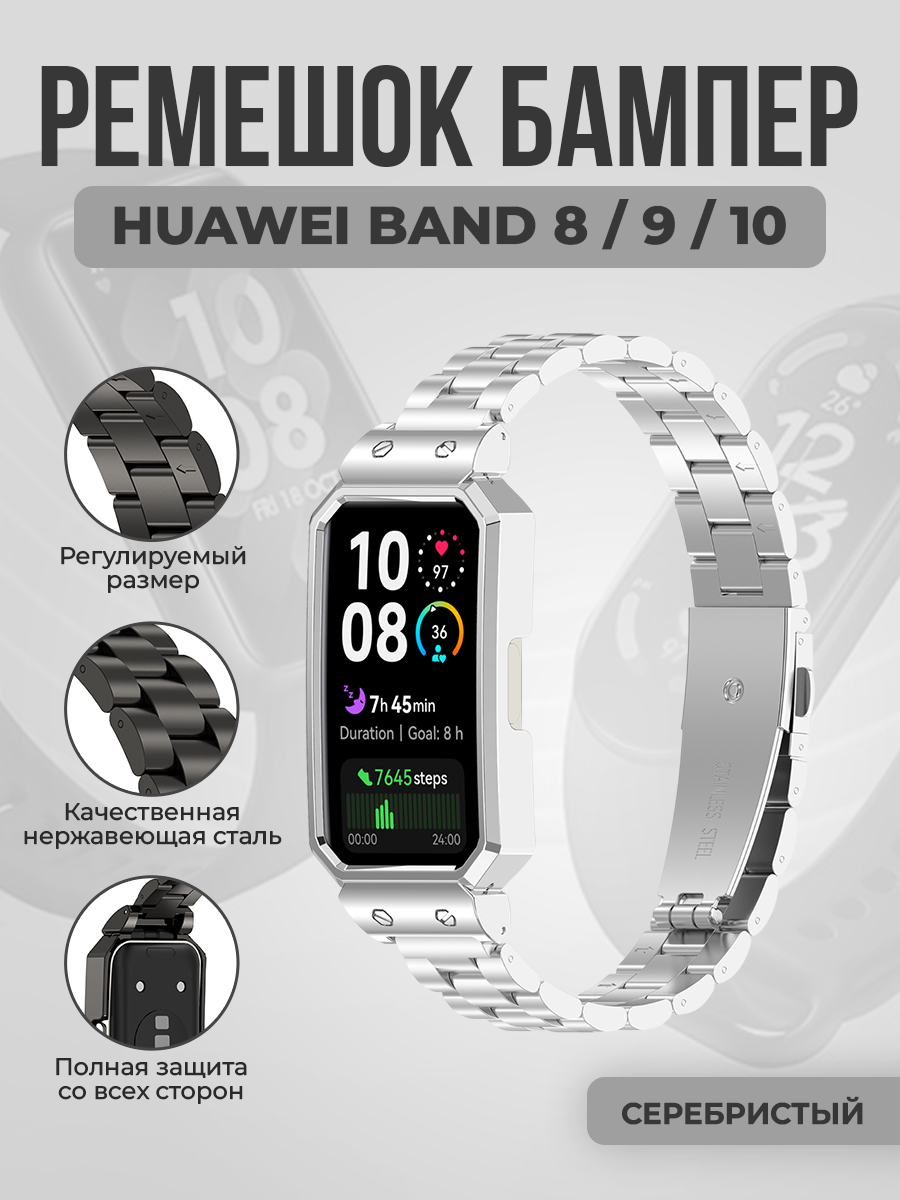 Металлический ремешок-бампер для Huawei Band 8/9/10, серебристый