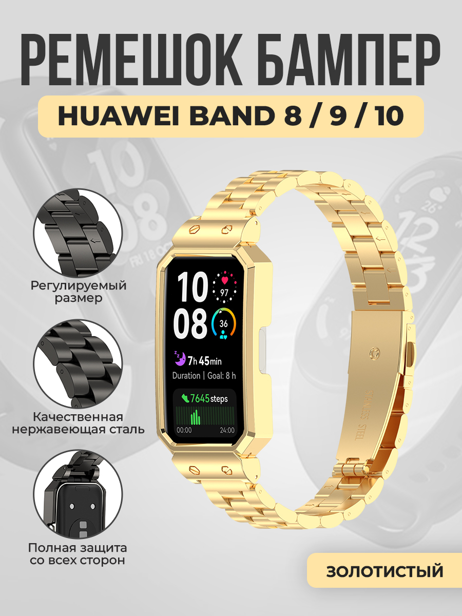 Металлический ремешок-бампер для Huawei Band 8/9/10, золотистый