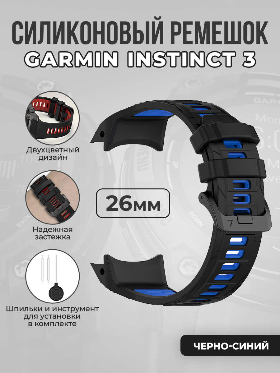 Двухцветный силиконовый ремешок для Garmin Instinct 3 / Garmin instinct 2x tactical 50 мм, 26 мм, черно-синий