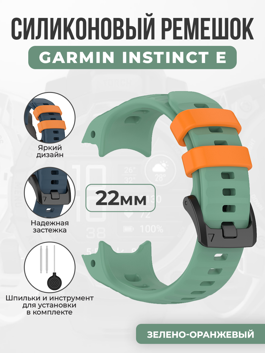 Силиконовый ремешок для Garmin Instinct Е, 22 мм , зелено-оранжевый