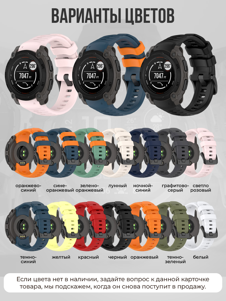 Стильный дизайн ремешка прекрасно дополнит ваш образ, будь то спортивный или повседневный стиль. Он предлагается в различных цветах, что позволяет выбрать вариант, который идеально впишется в ваш гардероб. Кроме того, легкость в установке и снятии делает его универсальным выбором для всех владельцев Garmin Instinct E.
