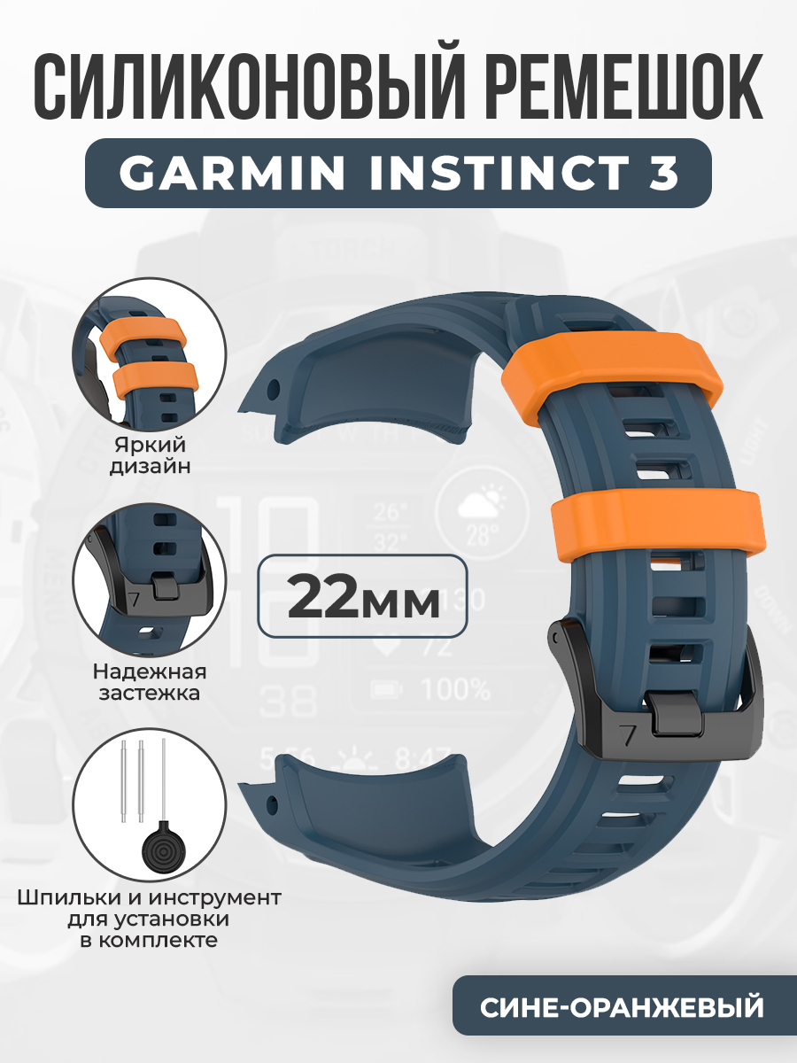 Силиконовый ремешок для Garmin Instinct 3, 22 мм, сине-оранжевый