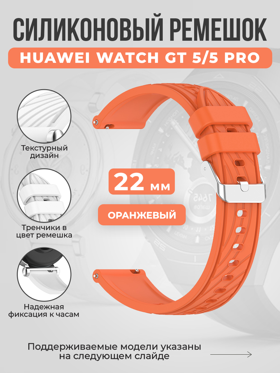 Универсальный силиконовый ремешок для Huawei Watch GT 5/5 Pro, 22 мм, оранжевый