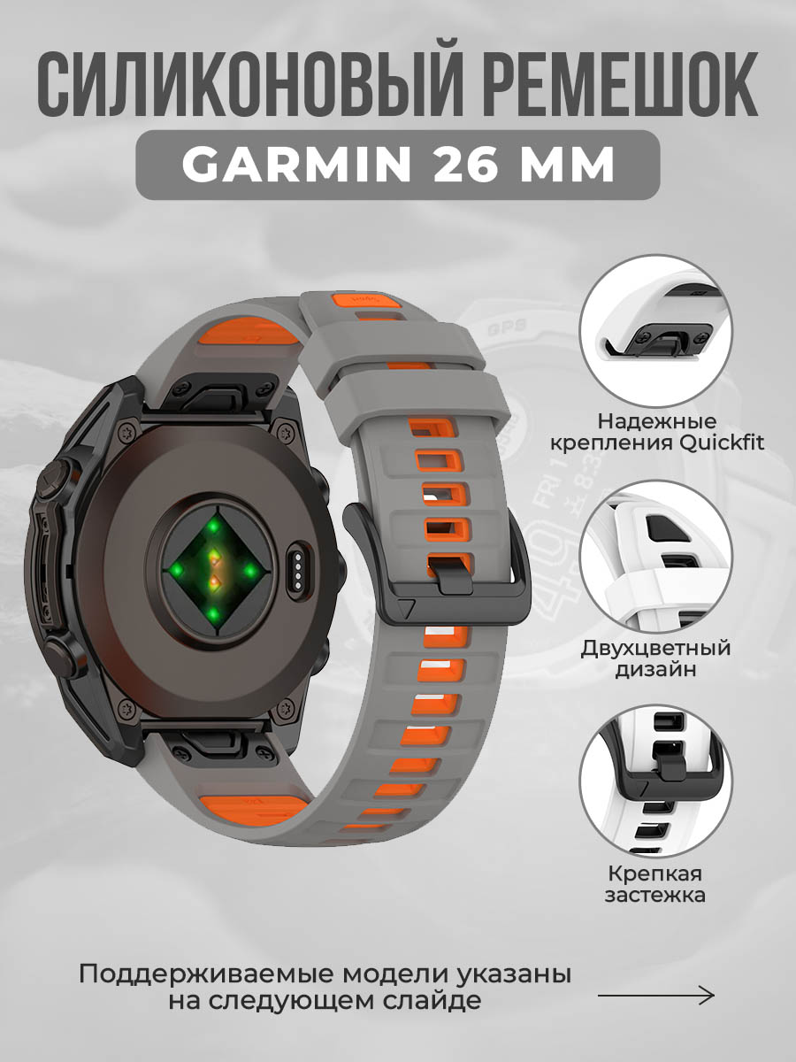 Двухцветный силиконовый ремешок для Garmin 26 мм, серо-оранжевый