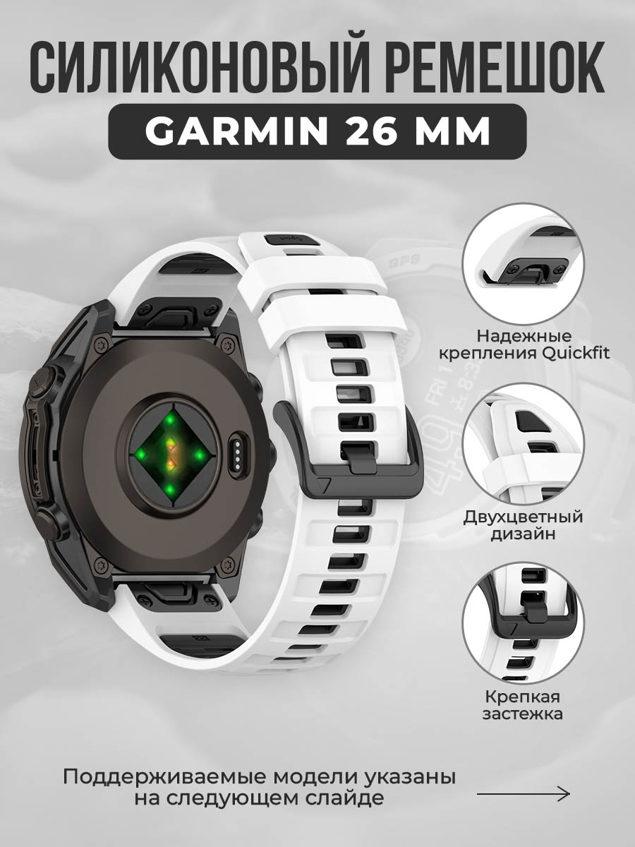 Двухцветный силиконовый ремешок для Garmin 26 мм, бело-черный