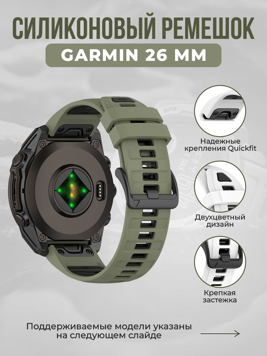 Двухцветный силиконовый ремешок для Garmin 26 мм, армейски-зеленый-черный