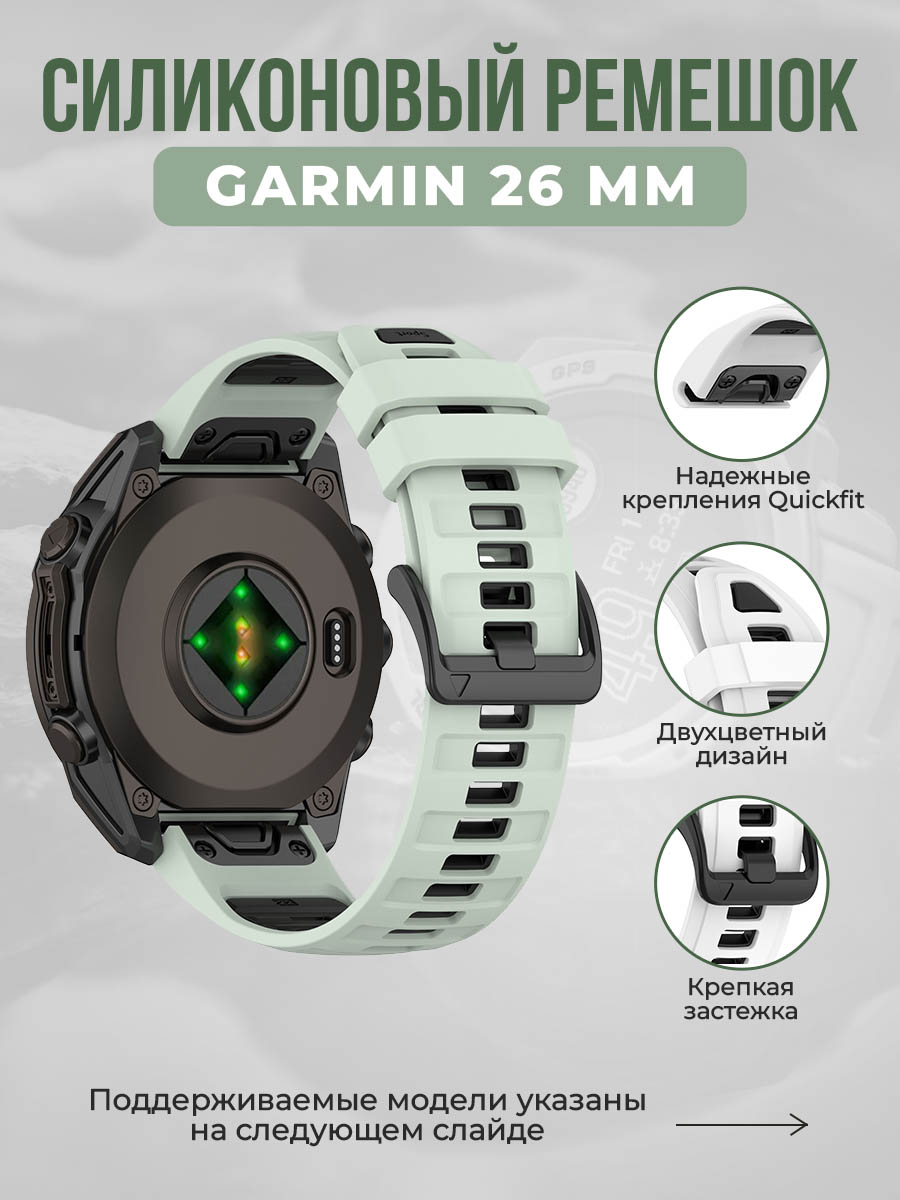 Двухцветный силиконовый ремешок для Garmin 26 мм, мятно-черный