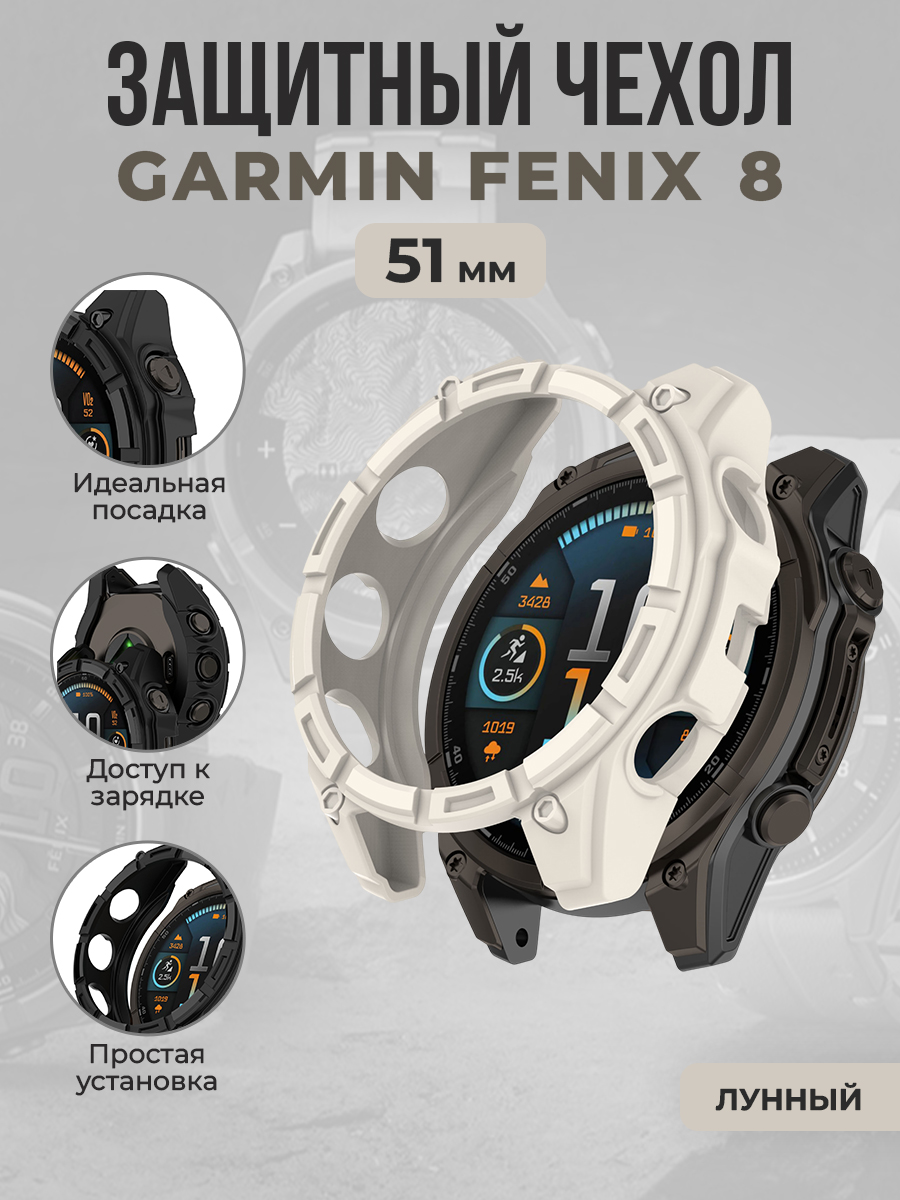 Мягкий защитный чехол для Garmin Fenix 8 AMOLED 51 мм, лунный