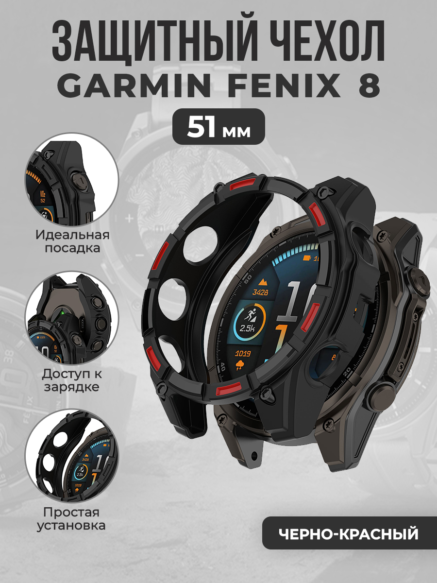 Мягкий защитный чехол для Garmin Fenix 8 AMOLED 51 мм, черно-красный