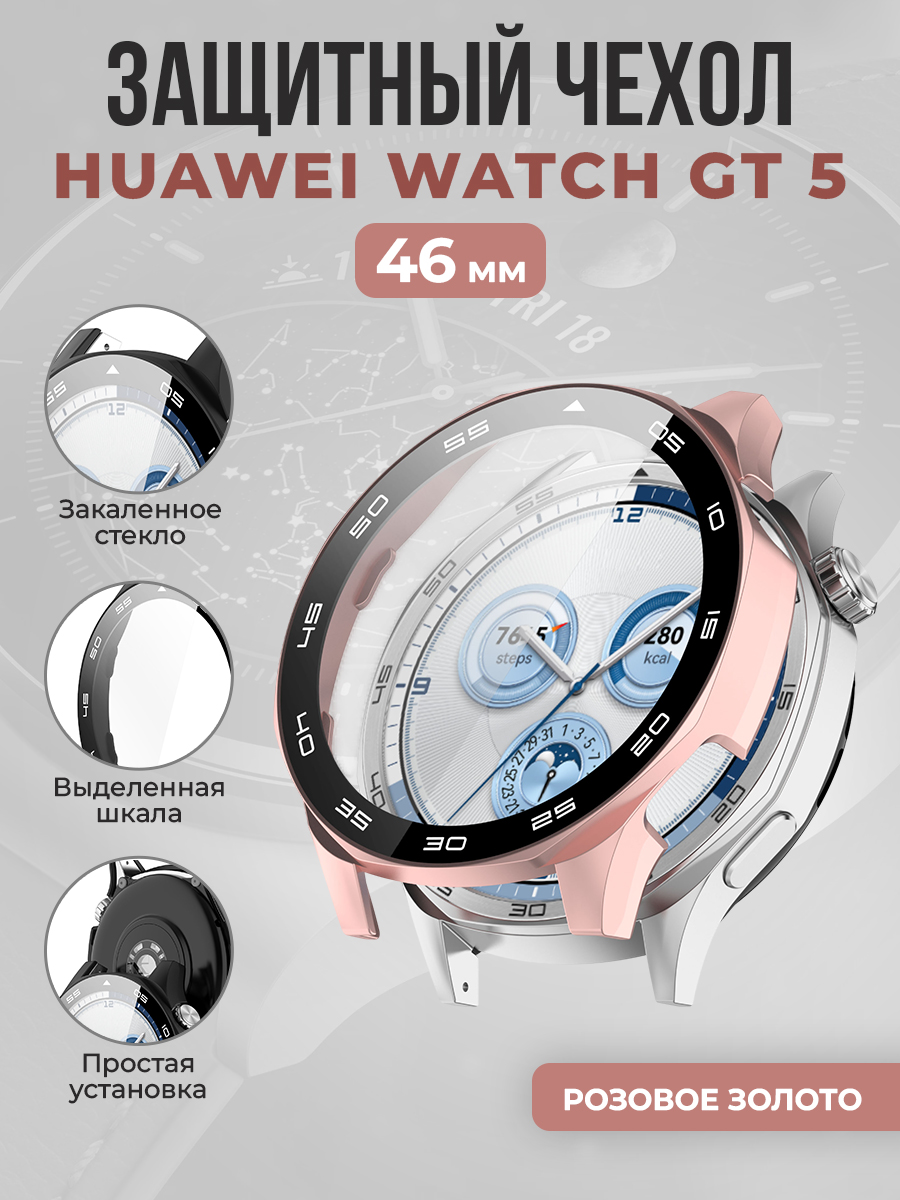 Защитный чехол со стеклом и выделенной шкалой для Huawei Watch GT 5, 46 мм, розовое золото