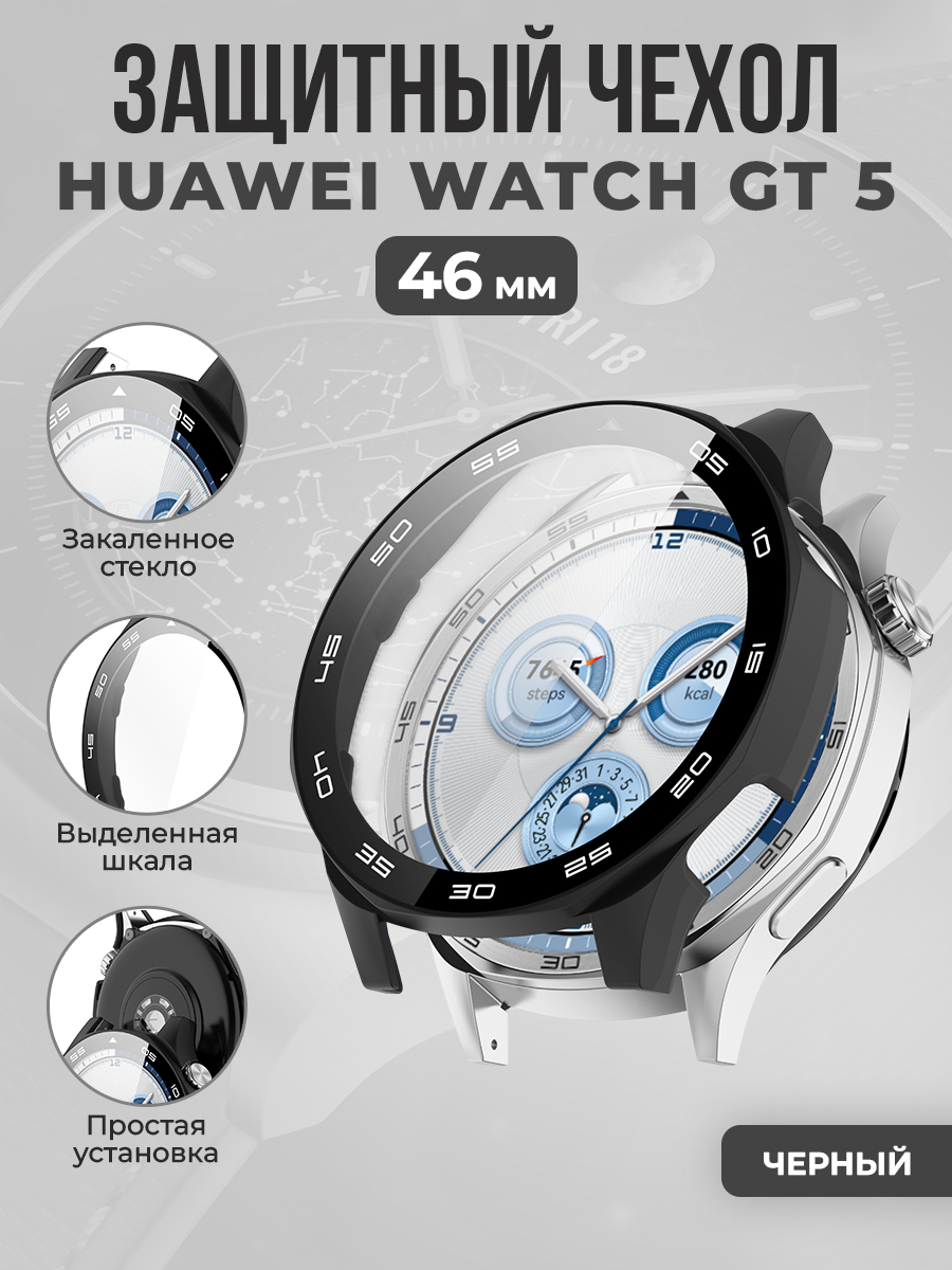 Защитный чехол со стеклом и выделенной шкалой для Huawei Watch GT 5, 46 мм, черный