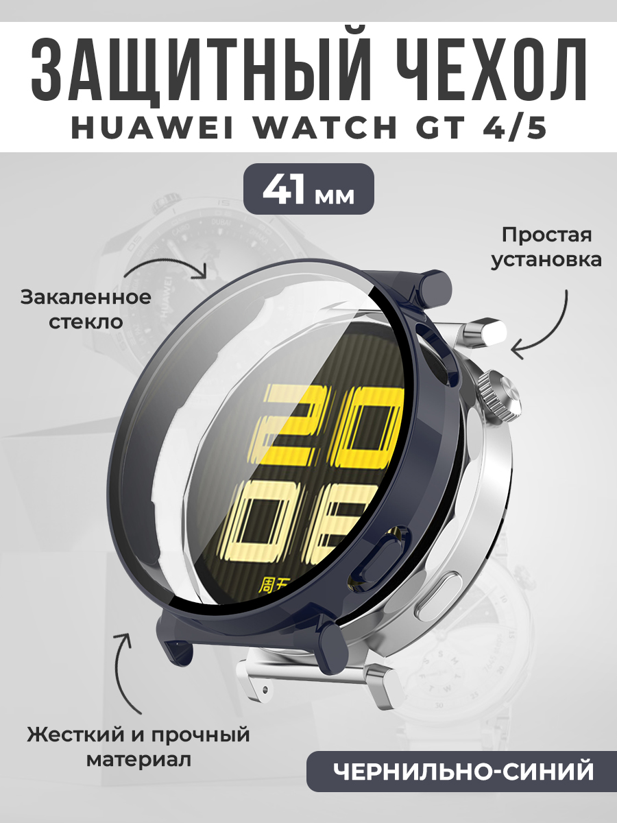Жесткий защитный чехол со стеклом для Huawei Watch GT 4 / GT 5 41 мм, чернильно-синий