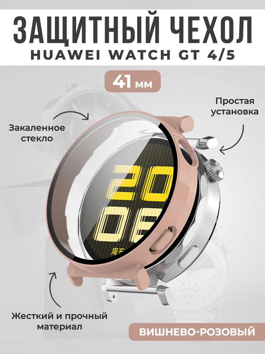Жесткий защитный чехол со стеклом для Huawei Watch GT 4 / GT 5 41 мм, вишнево-розовый