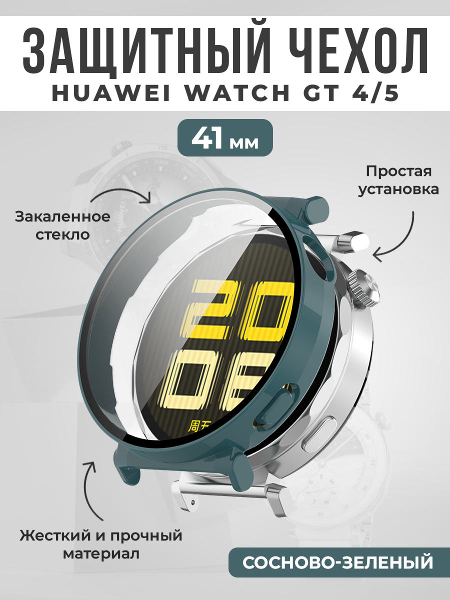 Жесткий защитный чехол со стеклом для Huawei Watch GT 4 / GT 5 41 мм, сосново-зеленый